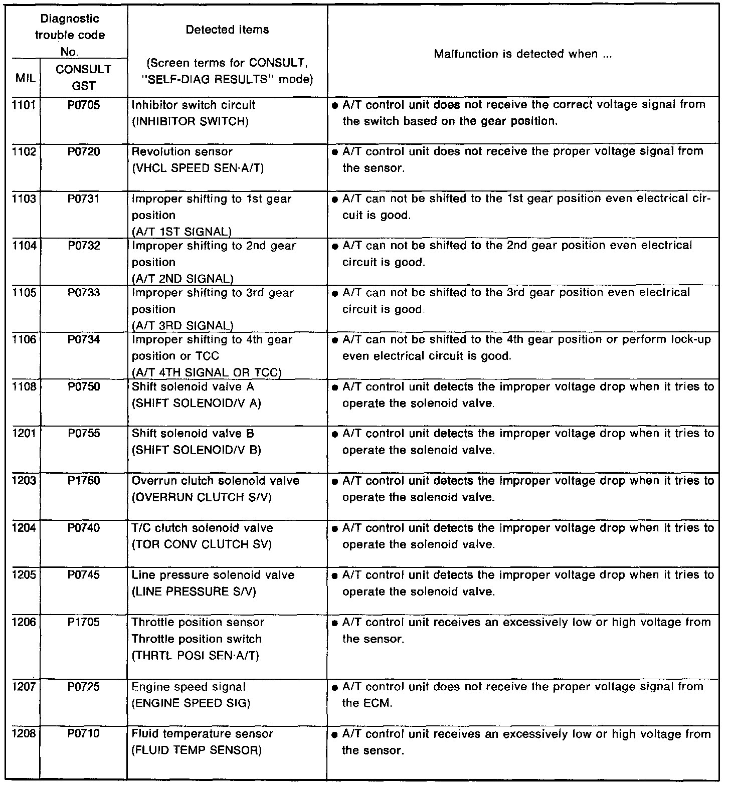 A/T RELATED ITEMS (Be sure to erase the DTC stored in ECM after the A/T related repair.)