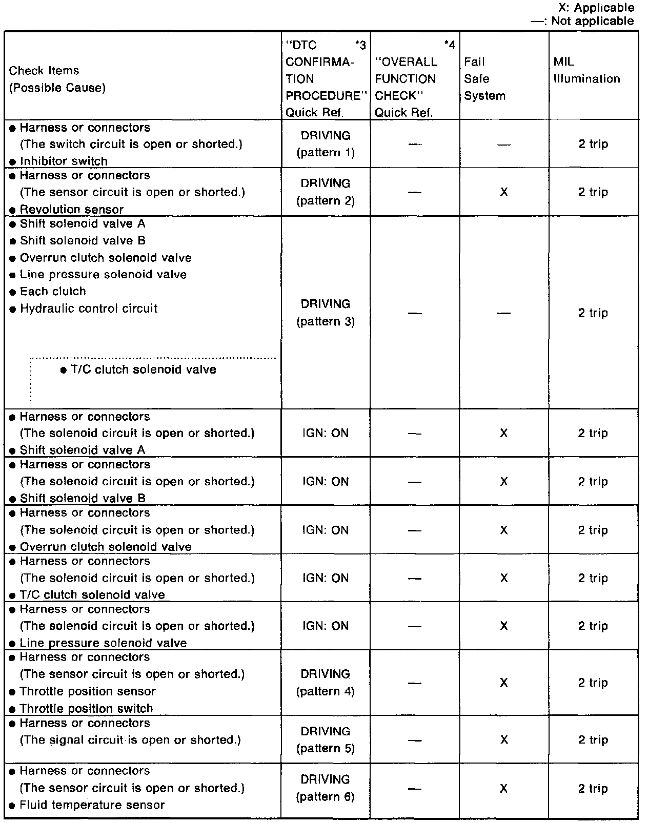 When no DTC CONFIRMATION PROCEDURE is available, the "NG" result of the OVERALL FUNCTION CHECK can be considered to mean the same as a DTC detection.