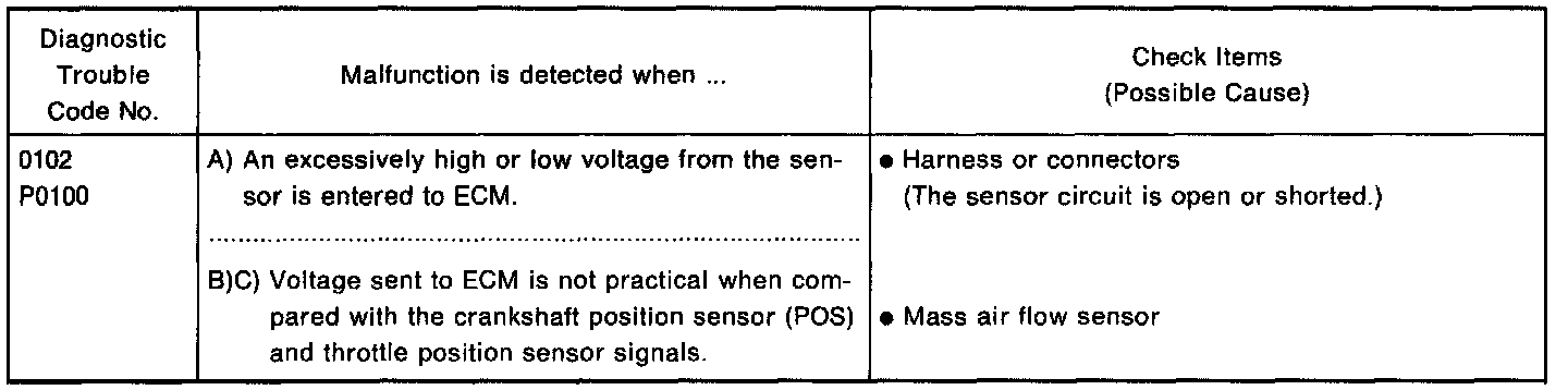 This procedure can be used for checking the overall function of the mass air flow sensor circuit. During this check, a DTC might not be confirmed.