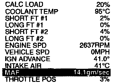 5) Check for linear mass air flow rise in response to increases to about 4,000 rpm in engine speed.