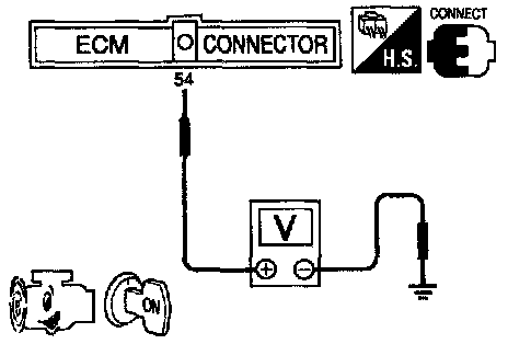 3) Check the voltage between ECM terminal (64) and ground.