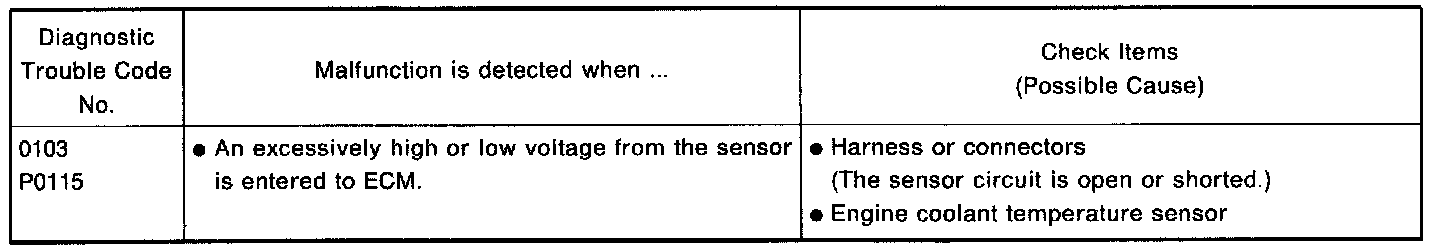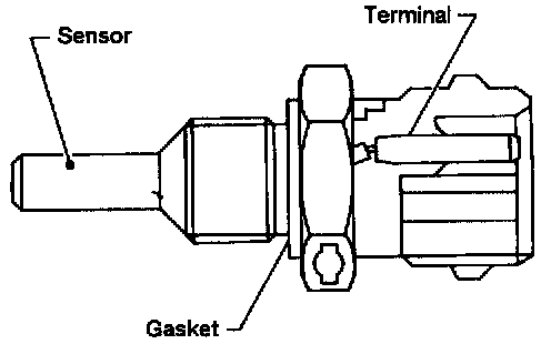The engine coolant temperature sensor is used to detect the engine coolant temperature. The sensor modifies a voltage signal from the ECM. The modified signal returns to the ECM as the engine coolant temperature input. The sensor uses a thermistor which is sensitive to the change in temperature. The electrical resistance of the thermistor decreases as temperature increases.