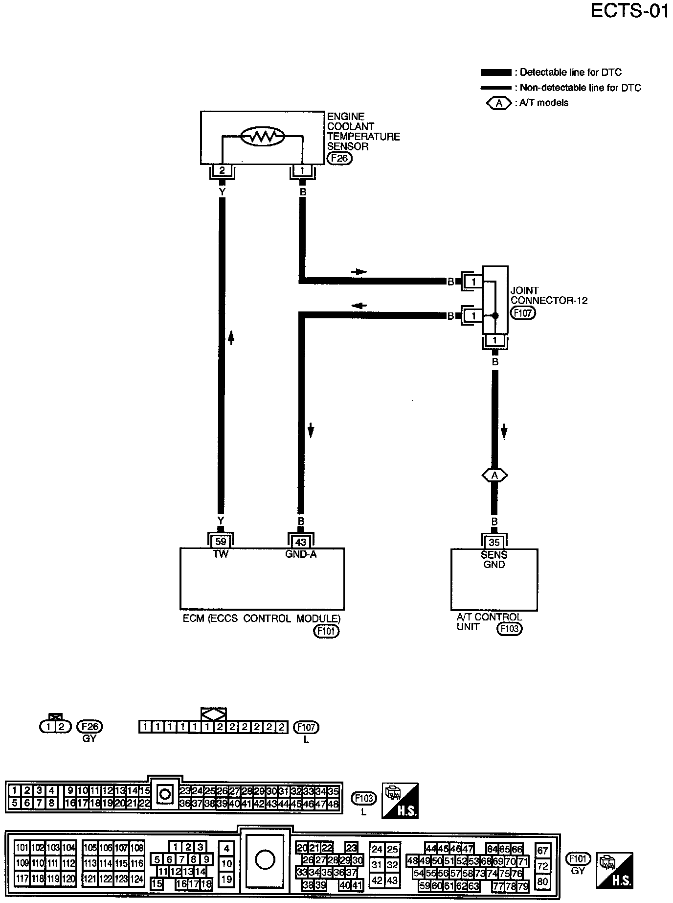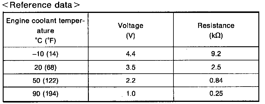 Engine coolant temperature sensor Check resistance as shown in the figure.