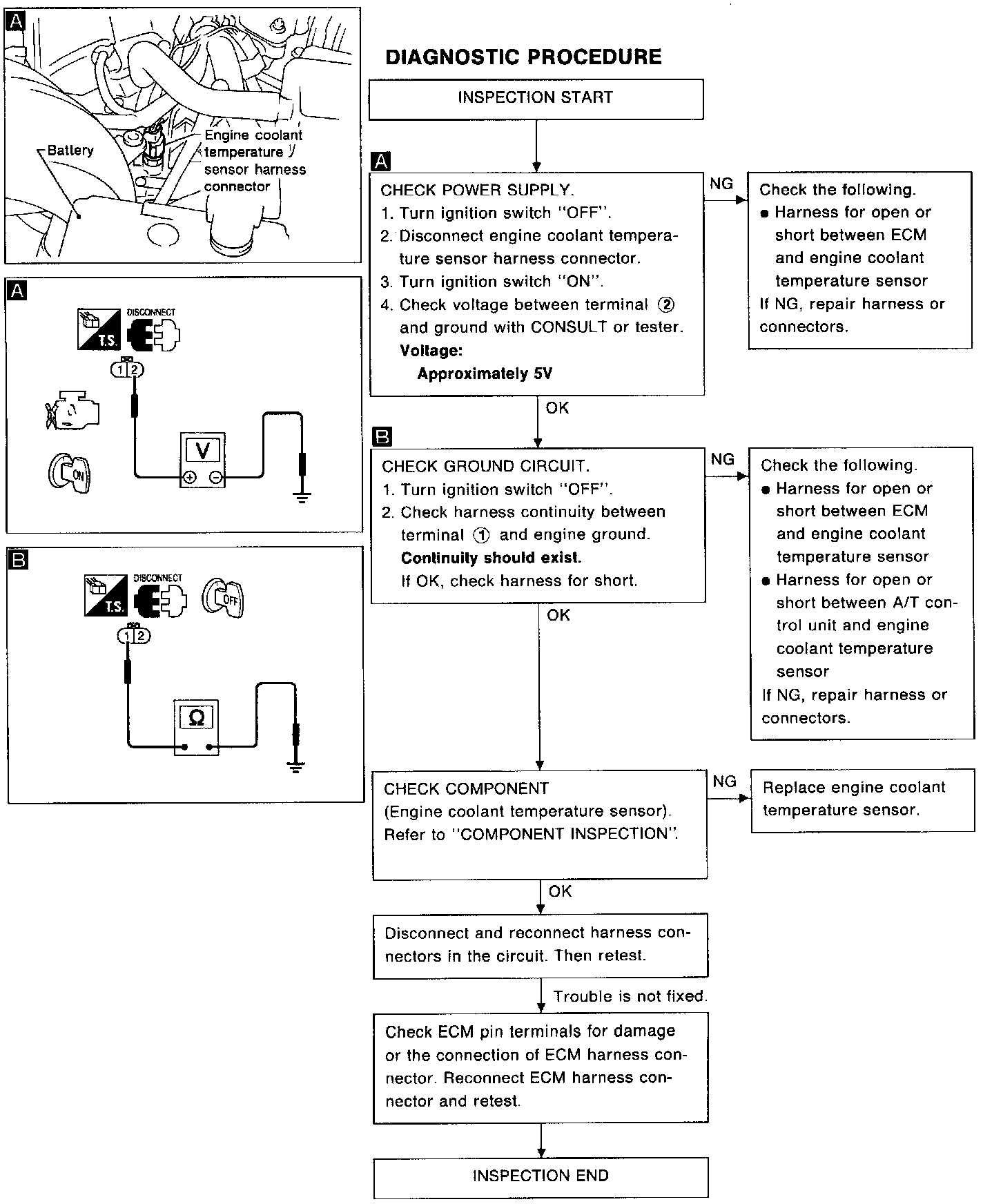 If NG, replace engine coolant temperature sensor.