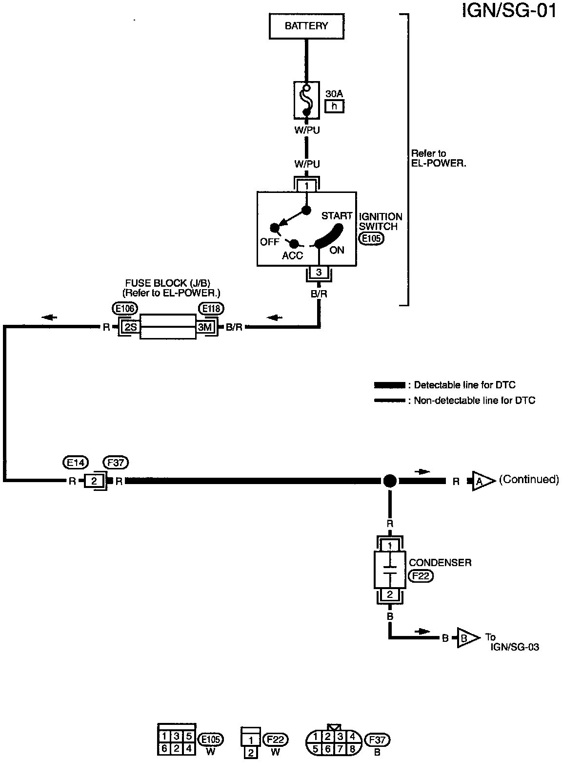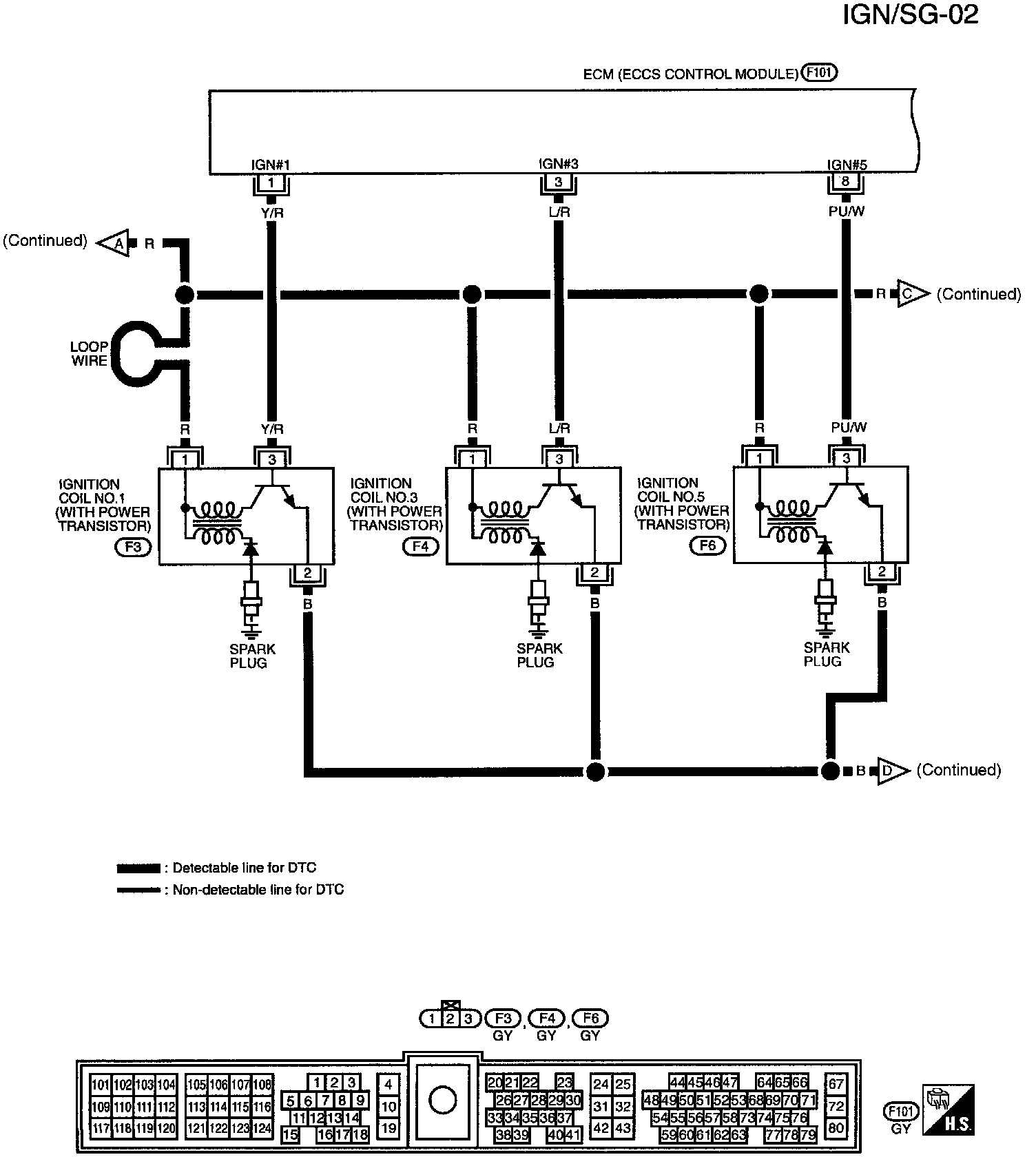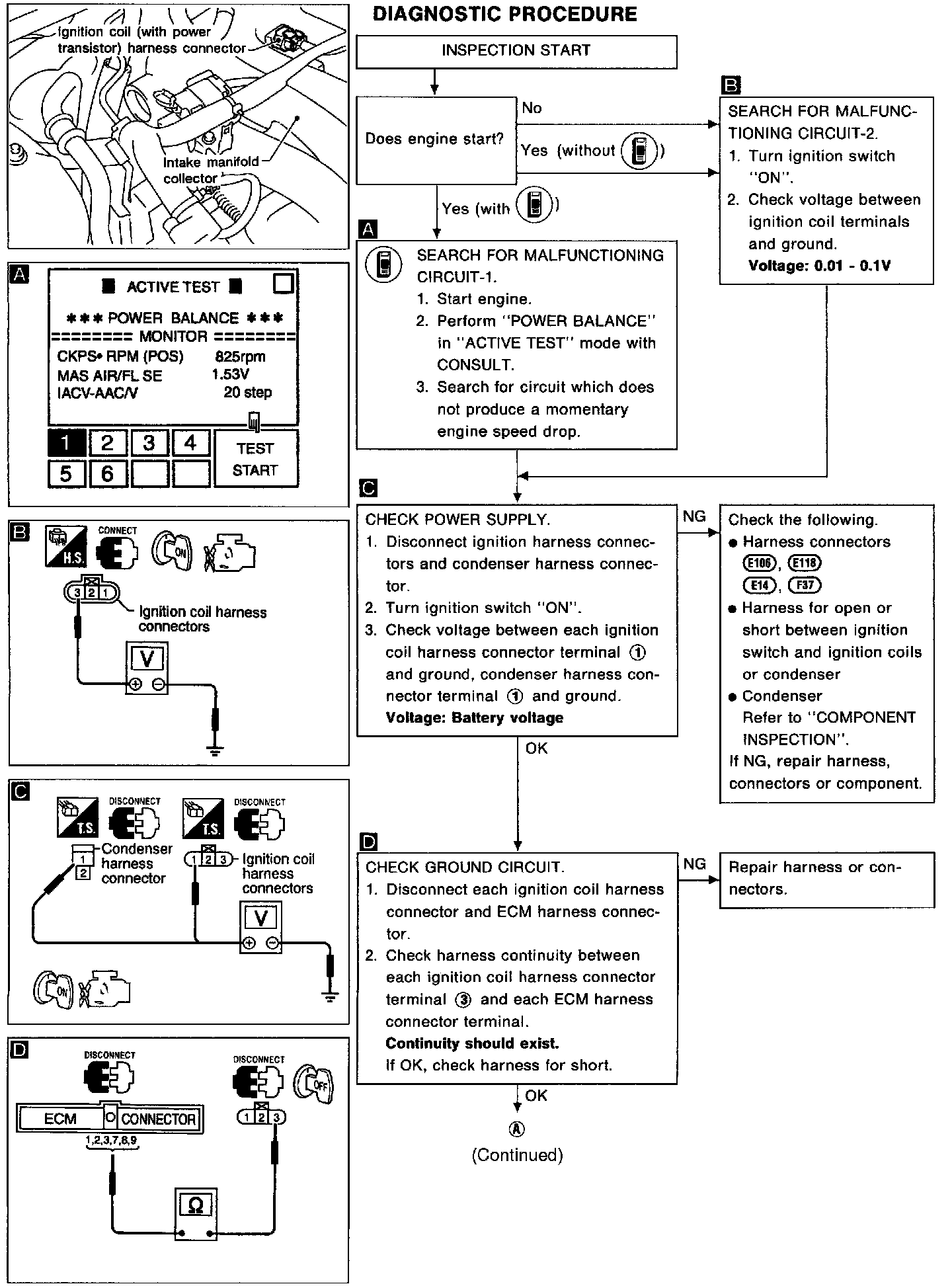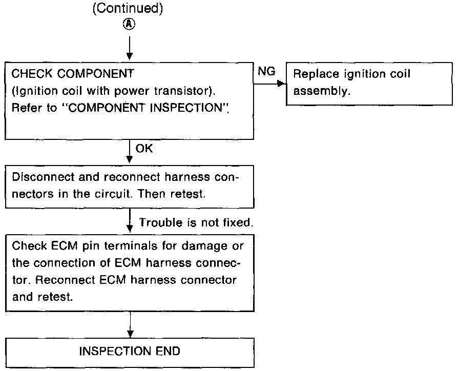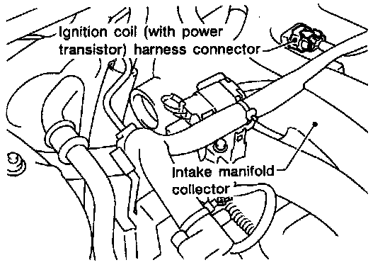 The ignition signal from the ECM is sent to and amplified by the power transistor. The power transistor turns on and off the ignition coil primary circuit. This on-off operation induces the proper high voltage in the coil secondary circuit.
