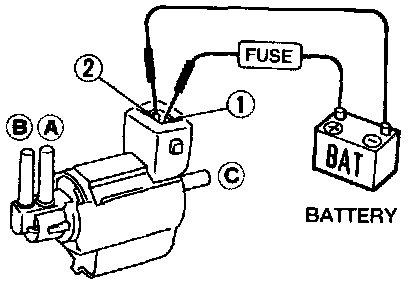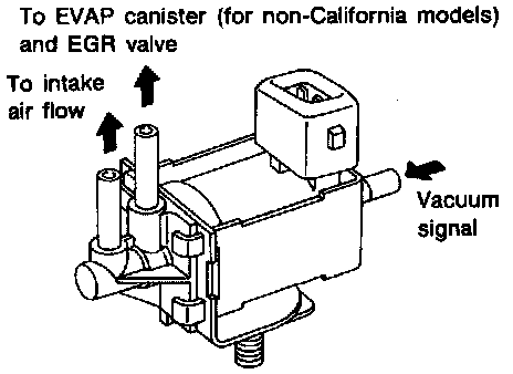 When the ECM sends an OFF signal, the vacuum signal passes through the solenoid valve. The signal then reaches the EVAP canister (for non-California models) and the EGR valve.