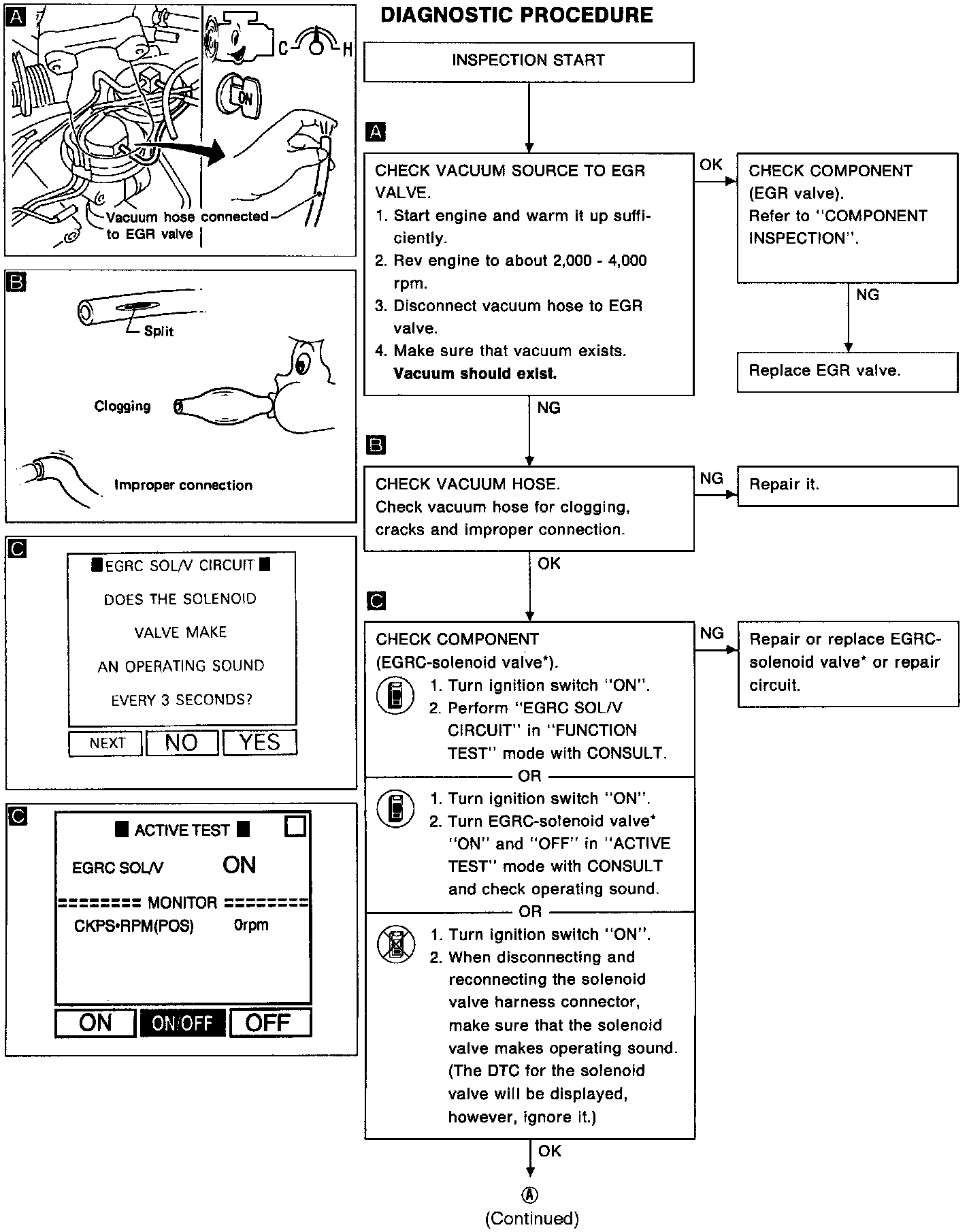 2) Select "EGRC SOLENOID VALVE" in "ACTIVE TEST" mode with CONSULT and turn the solenoid valve "OFF".