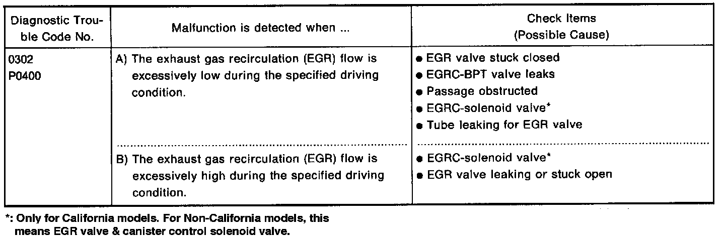 *: Only for California models. For non-California models, this means EGR valve & canister control solenoid valve.