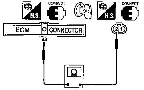 6) Check harness continuity between EGR temperature sensor harness connector terminal (2) and ECM terminal (43).