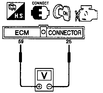 2) Confirm the voltage between ECM terminals (59) and (25) is higher than 2.24V.