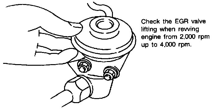 3) Check for the EGR valve lifting when revving engine from 2,000 rpm up to 4,000 rpm under no load.