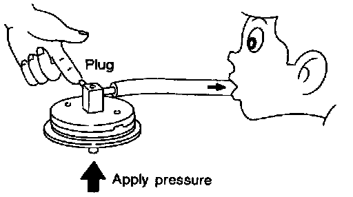 2. Vacuum from the other port and check for leakage while applying a pressure above 0.981 kPa (100 mmH2O, 3.94 inH2O) from under EGRC-BPT valve.