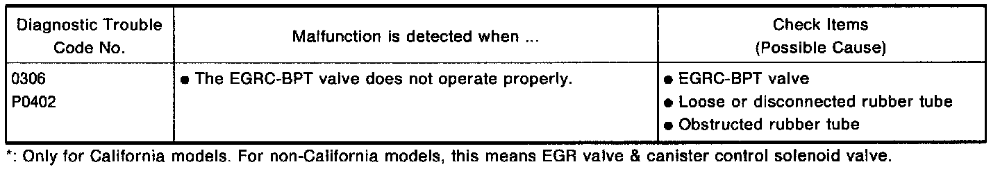 *: Only for California models. For non-California models, this means EGR valve & canister control solenoid valve.