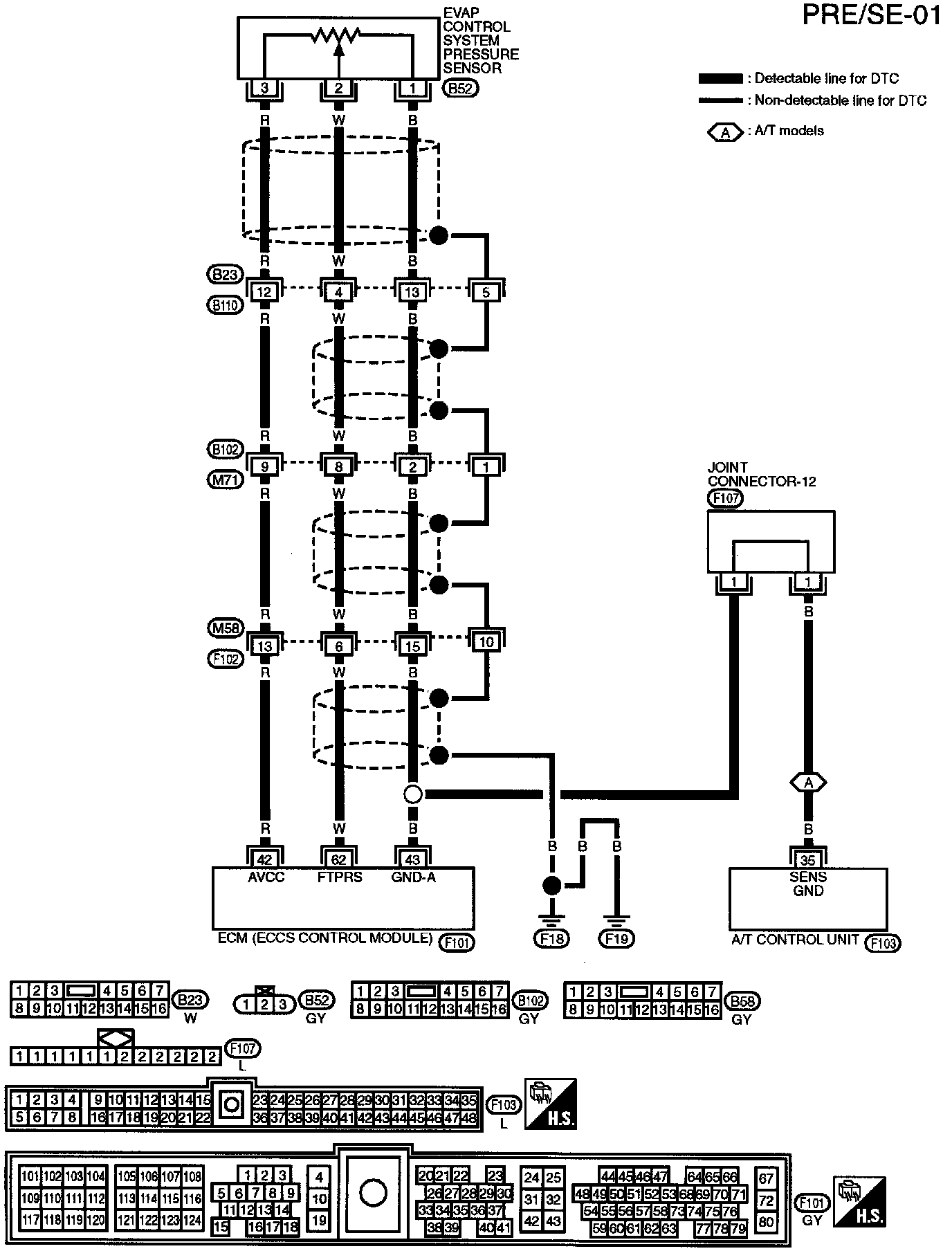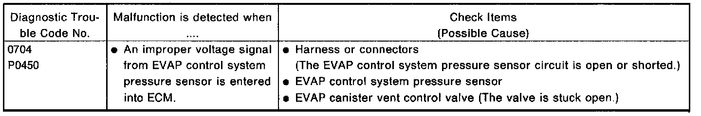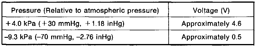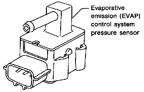 The EVAP control system pressure sensor is installed in the purge line. The sensor detects the pressure inside the purge line and modifies the voltage signal sent from the ECM. The modified signal will then be returned to the ECM as an input voltage signal. As the pressure increases, the voltage rises. The EVAP control system pressure sensor is not directly used to control the engine system. It is used only for on-board diagnosis.