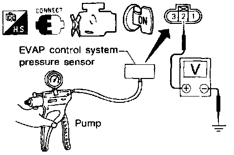 3. Apply vacuum and pressure to EVAP control system pressure sensor with pump as shown in figure.
