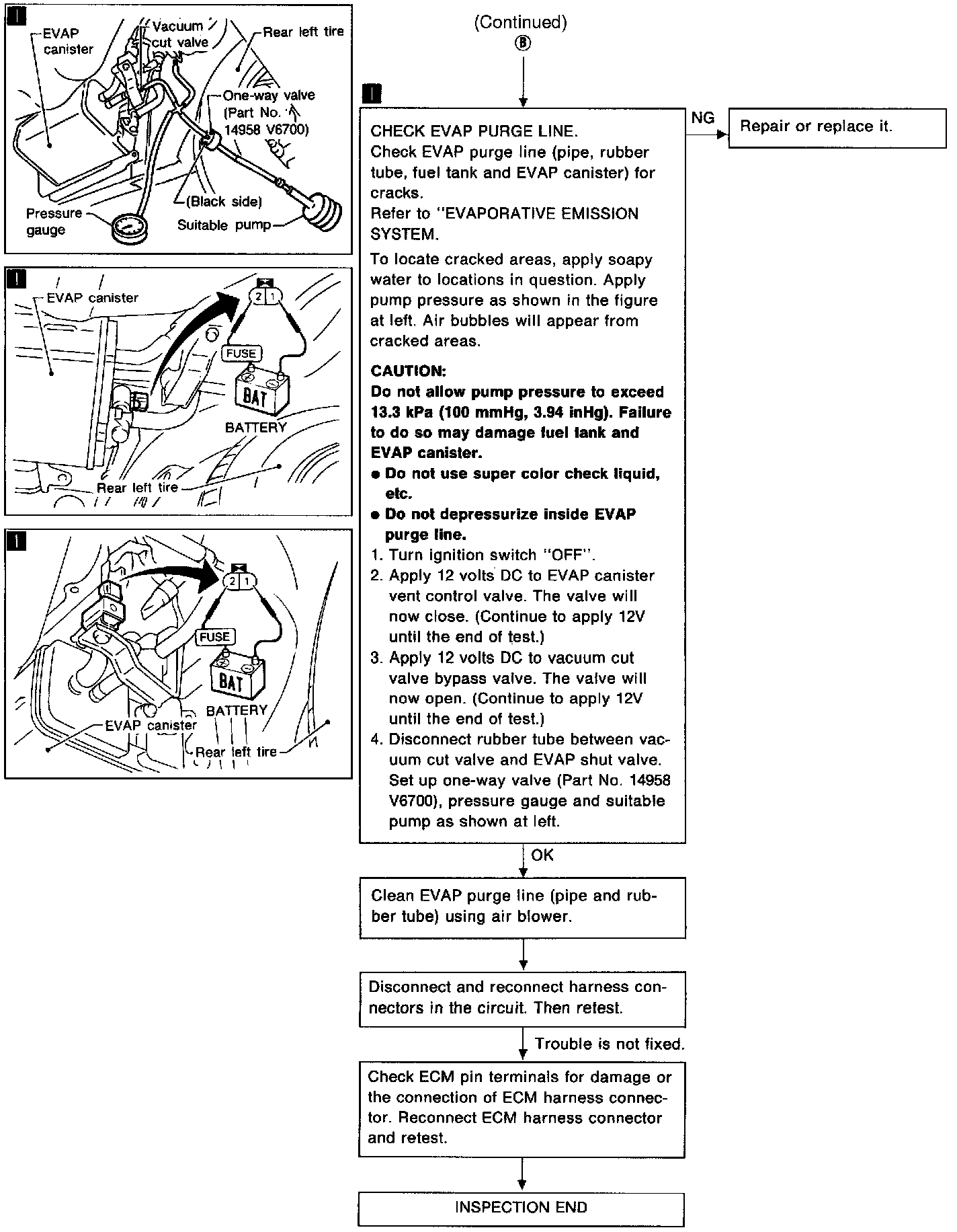 CAUTION: Do not allow pump pressure to exceed 13.3 kPa (100 mmHg, 3.94 inHg). Failure to do so may damage fuel tank and EVAP canister.