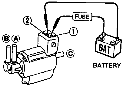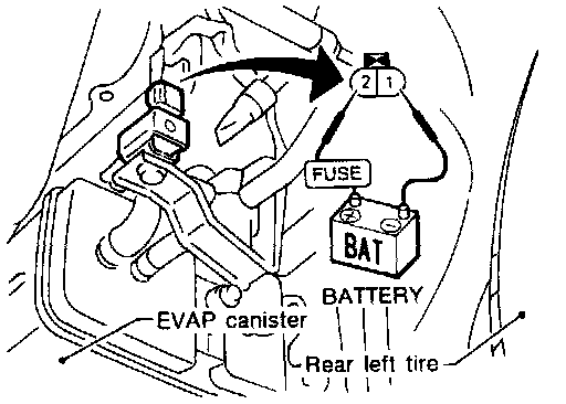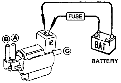 4. Apply 12 volts DC to EVAP canister vent control valve. The valve will now close. (Continue to apply 12V until the end of test.)