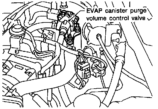 4. Remove EVAP canister purge volume control valve from intake manifold collector and disconnect hoses from the valve.