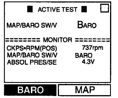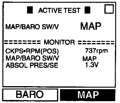 - When selecting "MAP", "ABSOL PRES/SE" indicates approximately 1.3V.