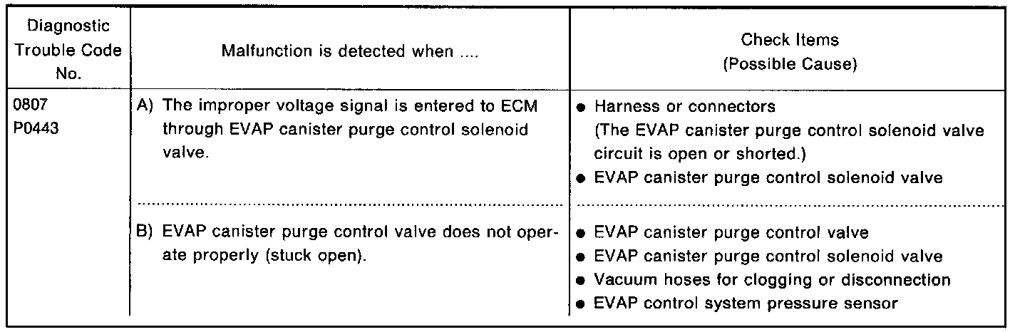 This system controls the vacuum signal applied to the EVAP canister purge control valve. When the ECM detects any of the following conditions, current does not flow through the EVAP canister purge control solenoid valve. The solenoid valve cuts the vacuum signal so that the EVAP canister purge control valve remains closed.