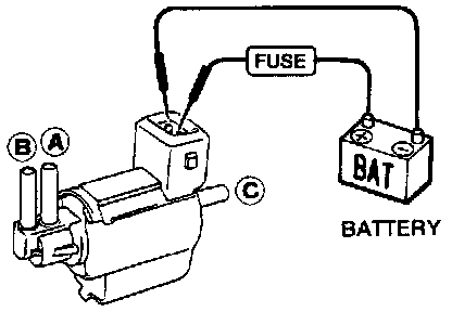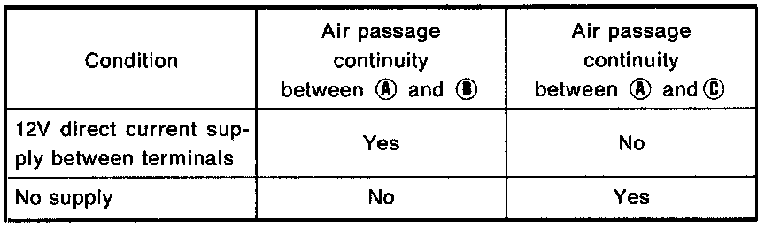 1. Blow air in ports (A), (B) and (C) and ensure that there is no leakage.