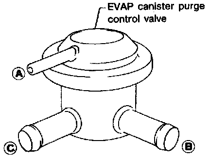 When the ECM sends an ON (ground) signal, the vacuum signal passes through the EVAP canister purge control solenoid valve. The signal then reaches the EVAP canister purge control valve.