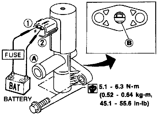 4. Check output voltage between terminal (2) and engine ground.