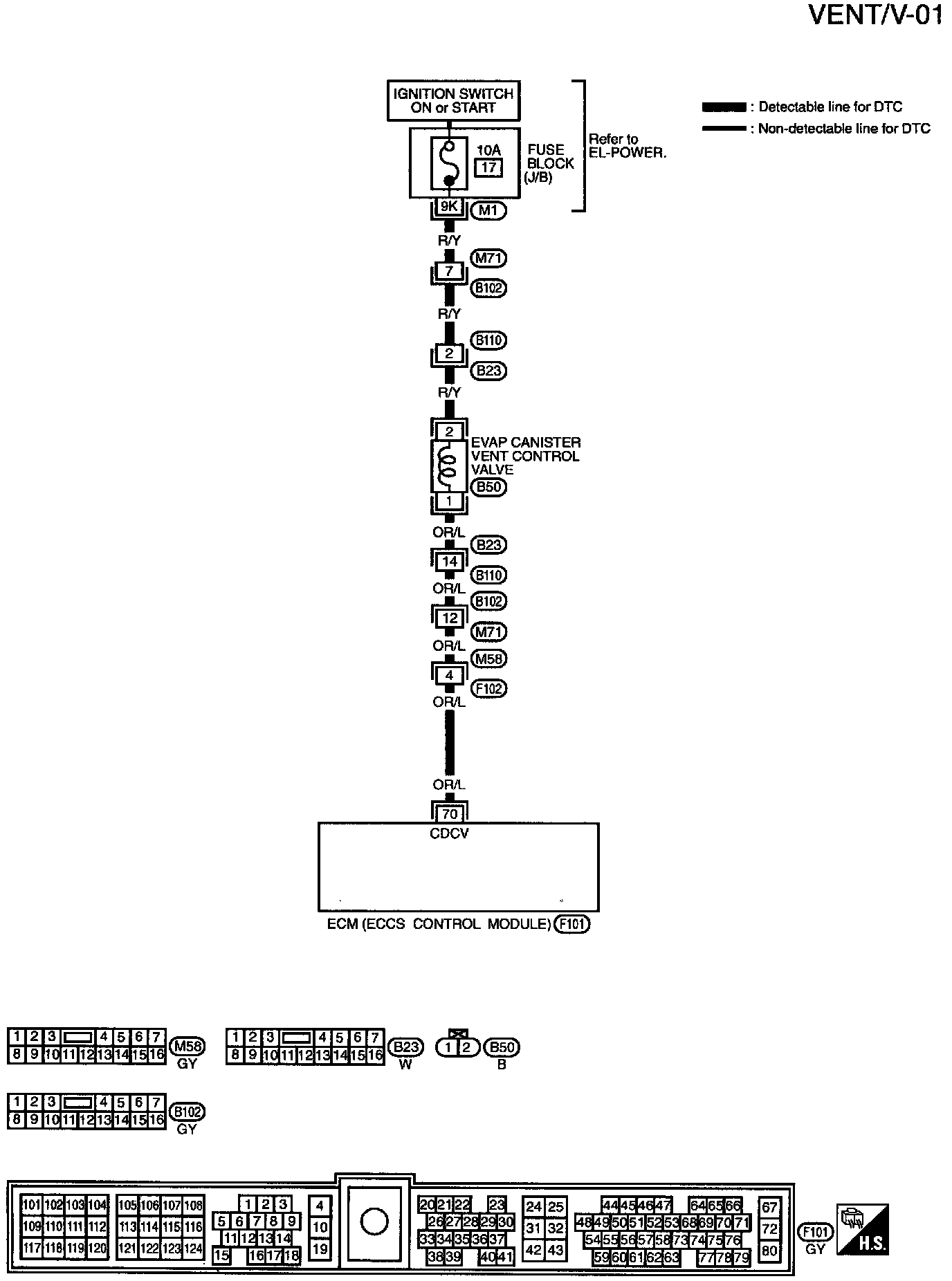 1. Remove EVAP canister vent control valve from EVAP canister and disconnect hoses from the valve.