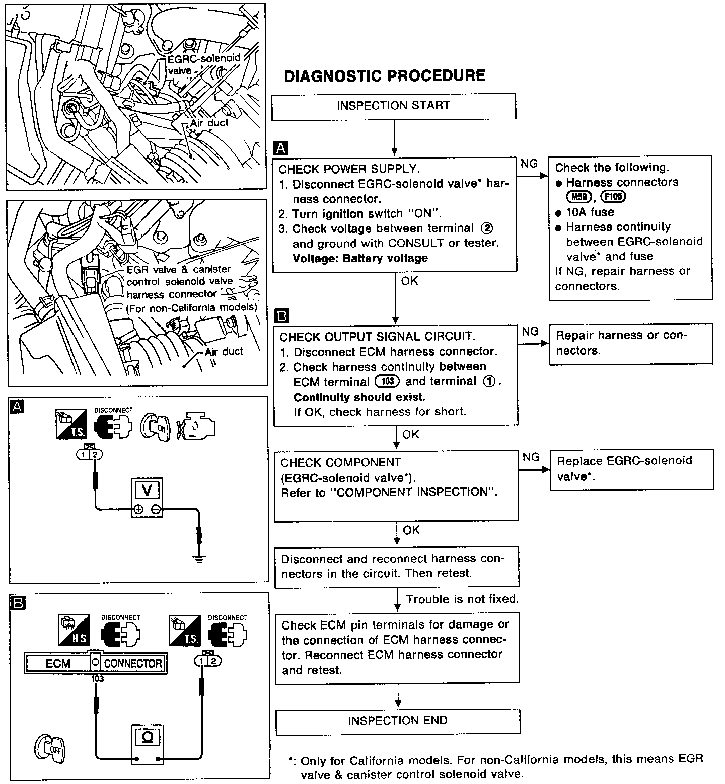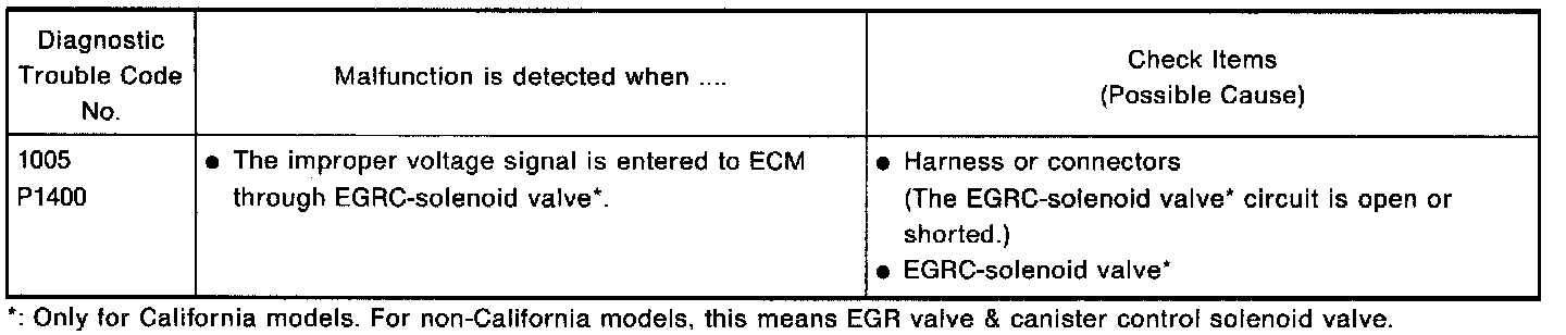 EGR Valve and Canister Control Solenoid Valve (For non-California models) (DTC: P1400)