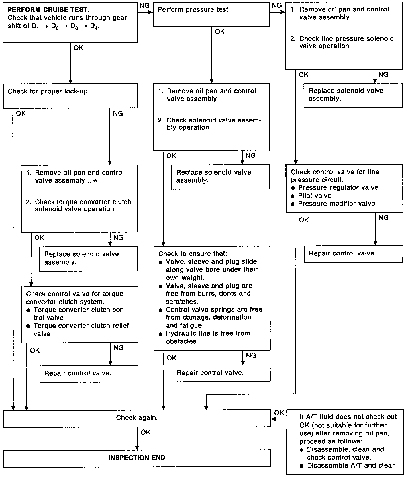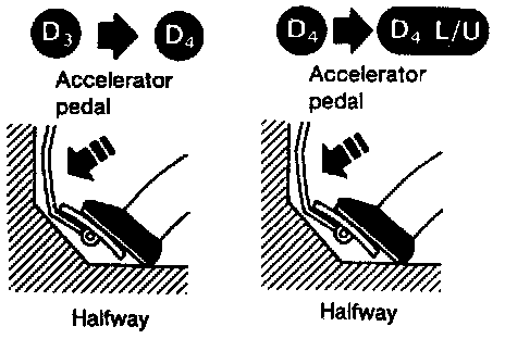 - This is indicated when the vehicle is being driven at any gear position other than 4th while the A/T control unit is instructing the A/T to shift the gear in the 4th position. Also, this is indicated when the vehicle is being driven without the torque converter clutch locked up while the A/T control unit is instructing the A/T to lock up the torque converter clutch.