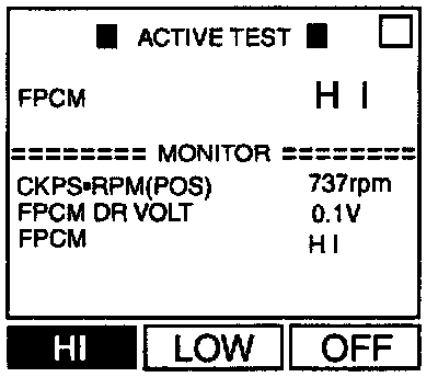 - When selecting "HI", "FPCM DR VOLT" indicates approximately 0V.