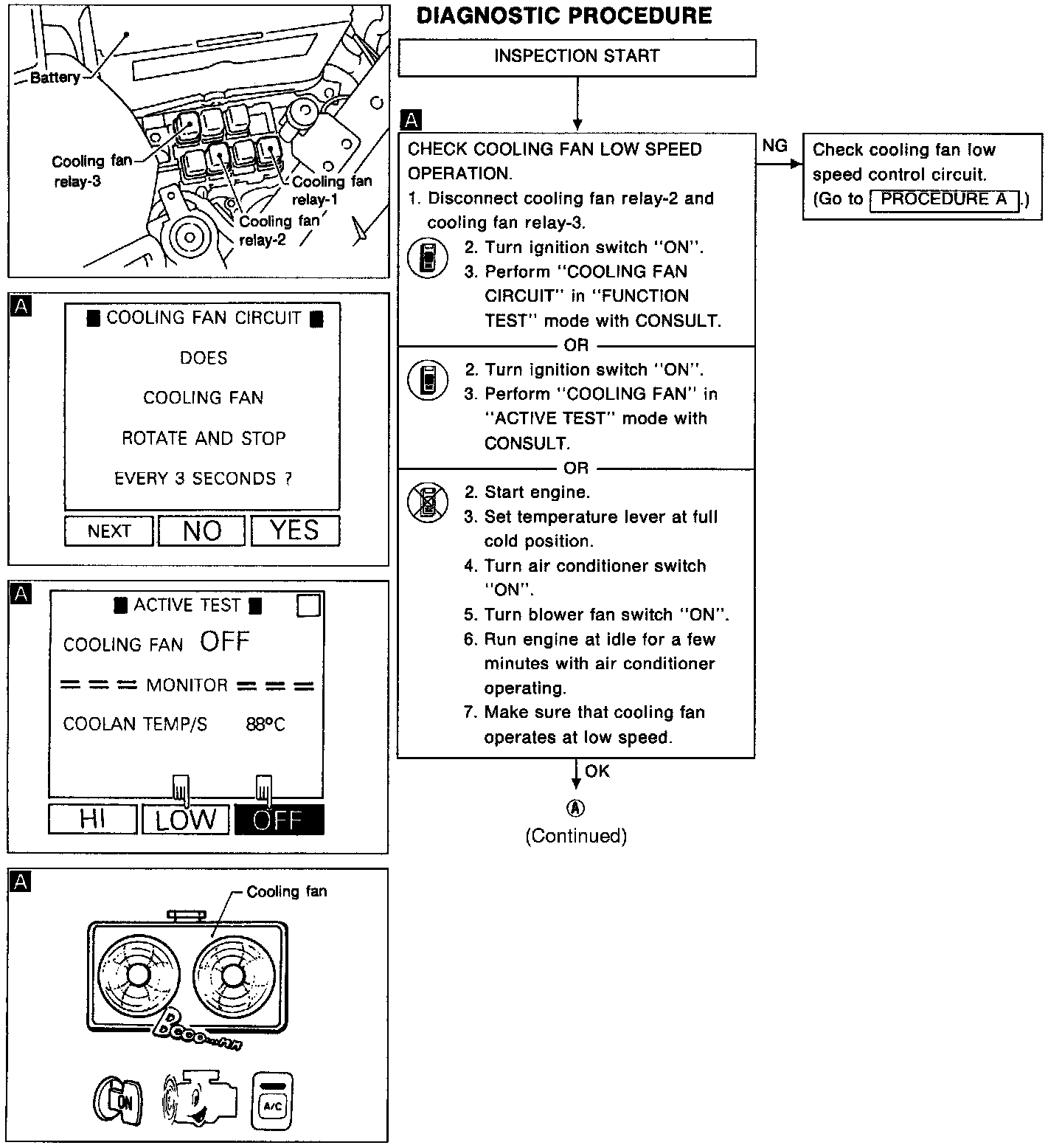 13) Restart engine and make sure that cooling fan operates at higher speed than low speed.