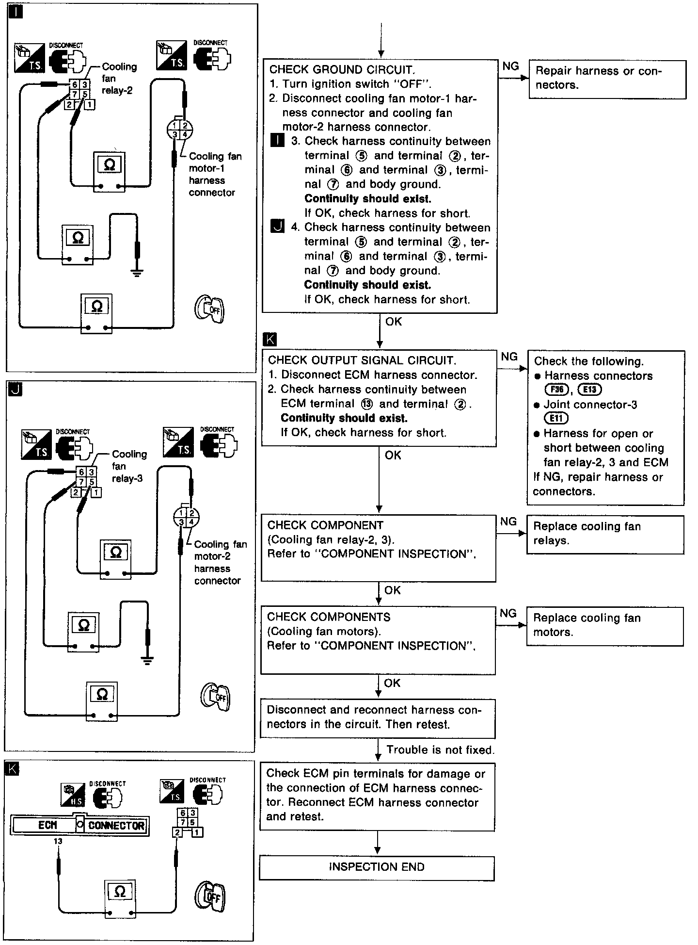 If NG, replace cooling fan motor.