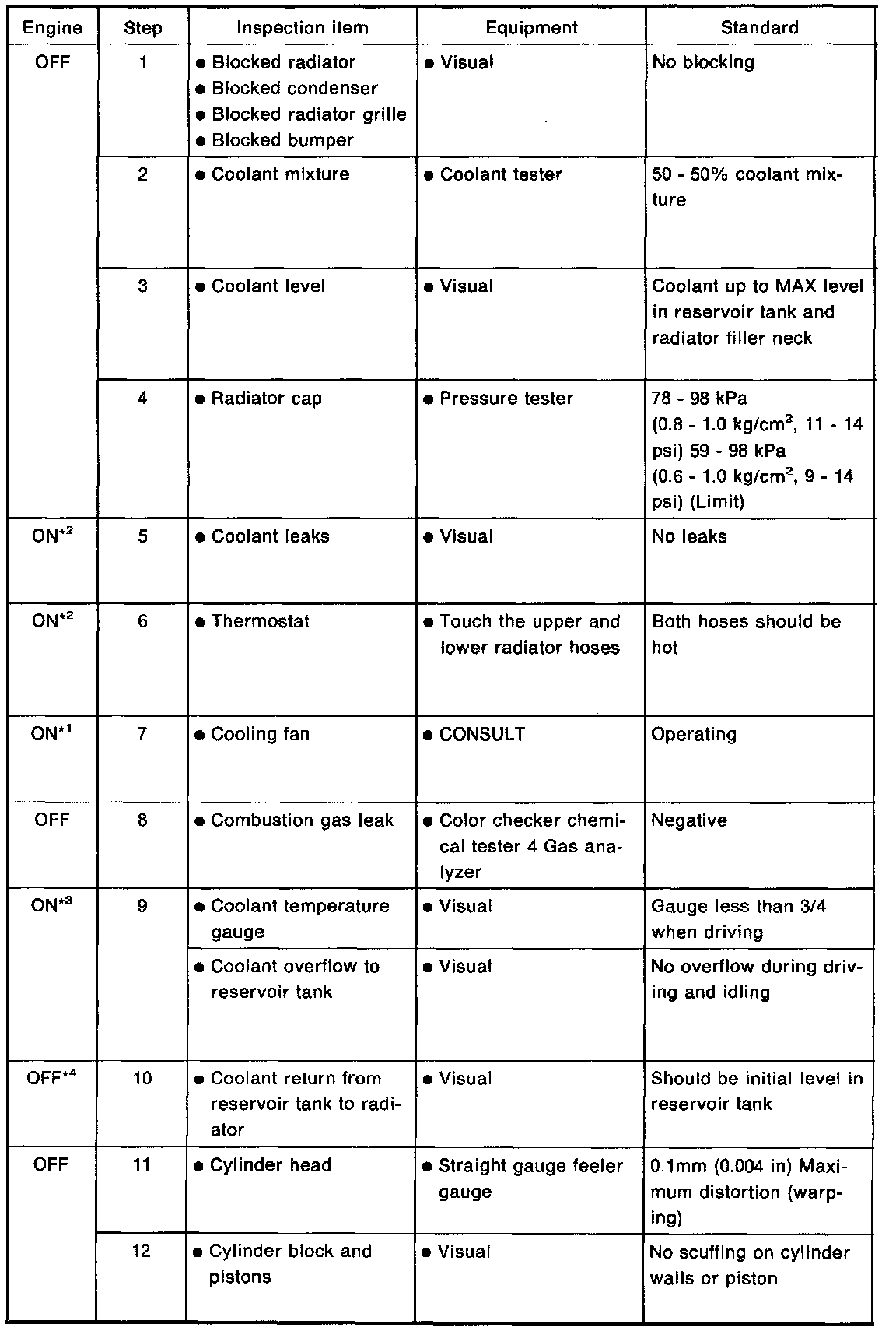 *2: Engine running at 3,000 rpm for 10 minutes.