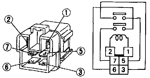 Check continuity between terminals (3) and (5), (6) and (7)