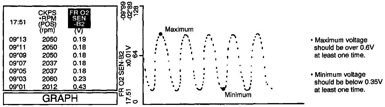 - "FR O2 SEN-B2" voltage goes above O.6 V at least once.