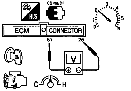 2) Set voltmeter probes between ECM terminal (51) (sensor signal) and (25) (engine ground).