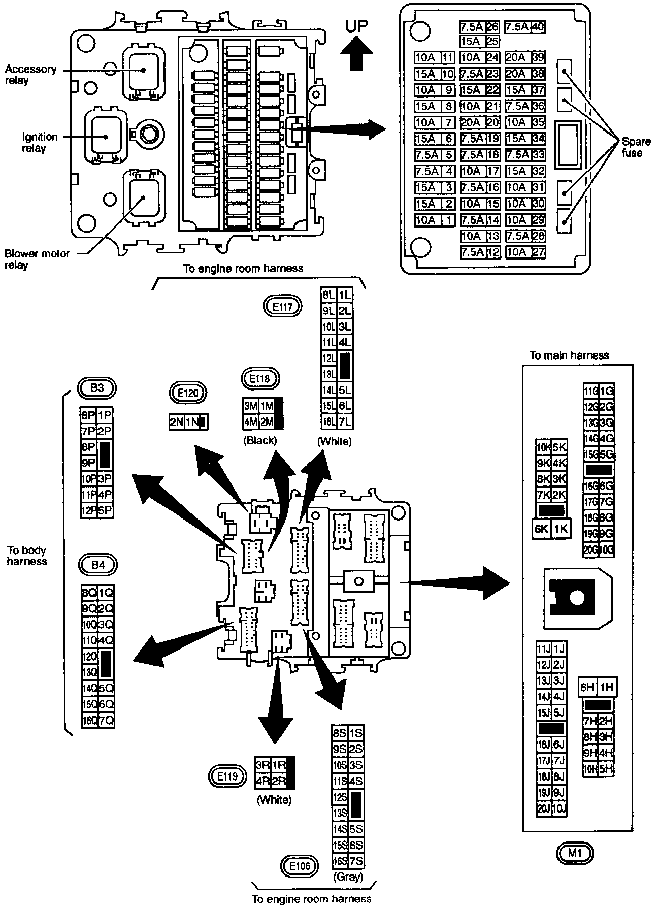 Fuse Block-Junction Box (J/B) Terminal Arrangement: