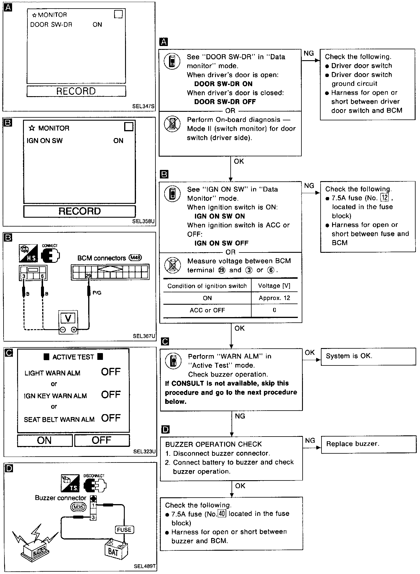 Symptom: Light warning /Ignition key warning buzzer does not activate.