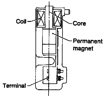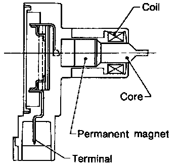 The sensor consists of a permanent magnet, core and coil. When engine is running, the gap between the sensor and the crankshaft pulley will periodically change. Permeability near the sensor also changes.