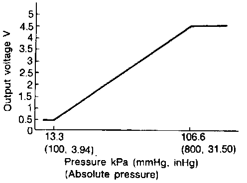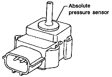 The absolute pressure sensor is connected to the MAP/BARO switch solenoid valve with a duct. The sensor detects ambient barometric pressure and intake manifold pressure respectively, and modifies the voltage signal received from the ECM. The modified signal will then be returned to the ECM. As the pressure increases, the voltage rises. The absolute pressure sensor is not directly used to control the engine system. It is used only for on-board diagnosis.