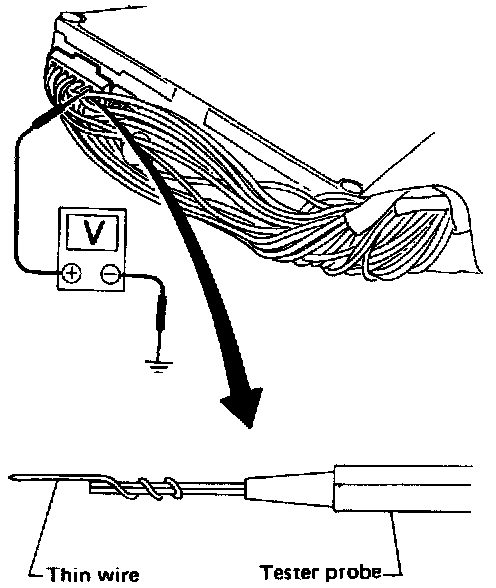 3. Perform all voltage measurements with the connectors connected. Extend tester probe as shown to perform tests easily.