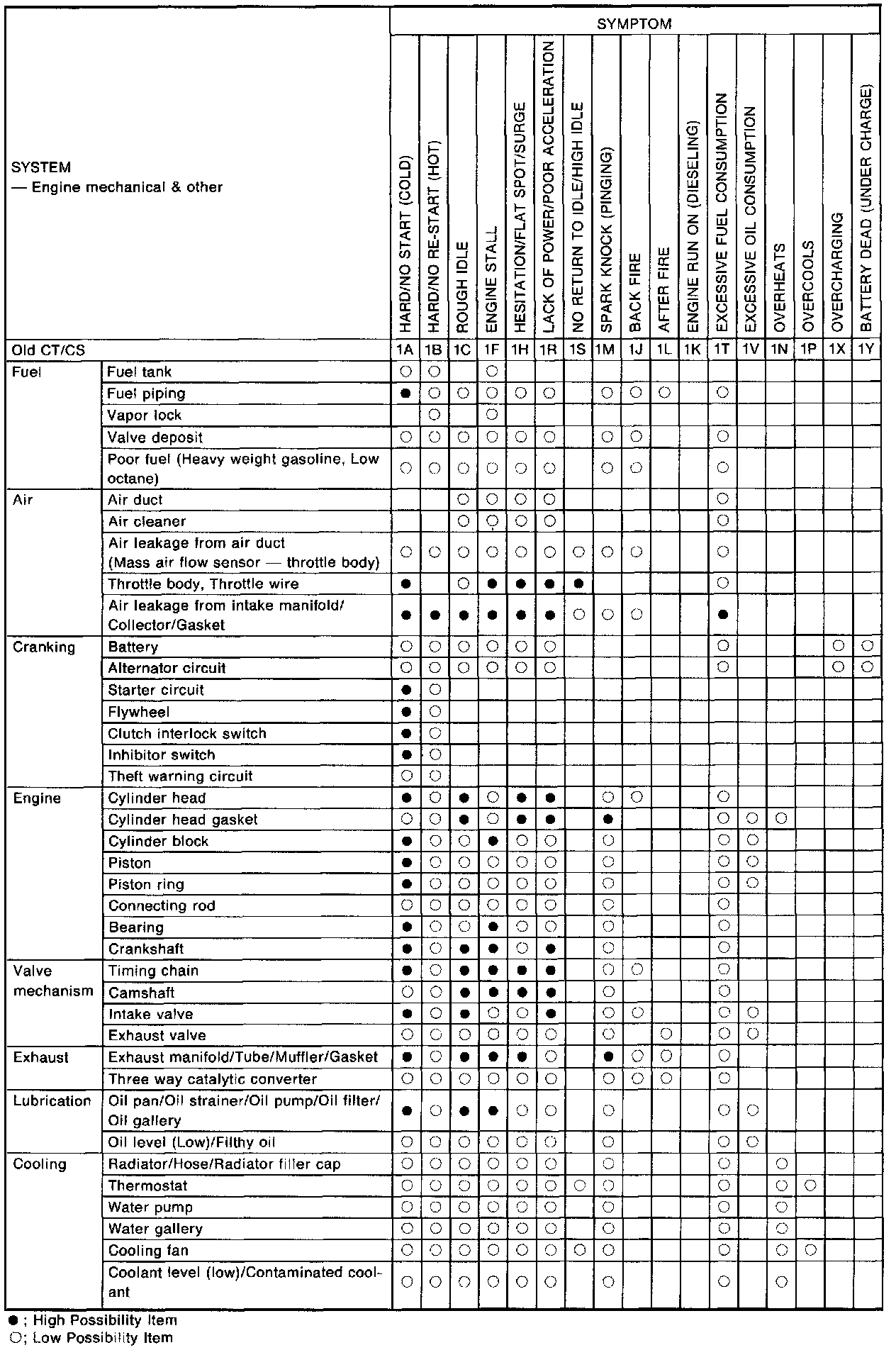 Matrix Chart For Old CT/CS