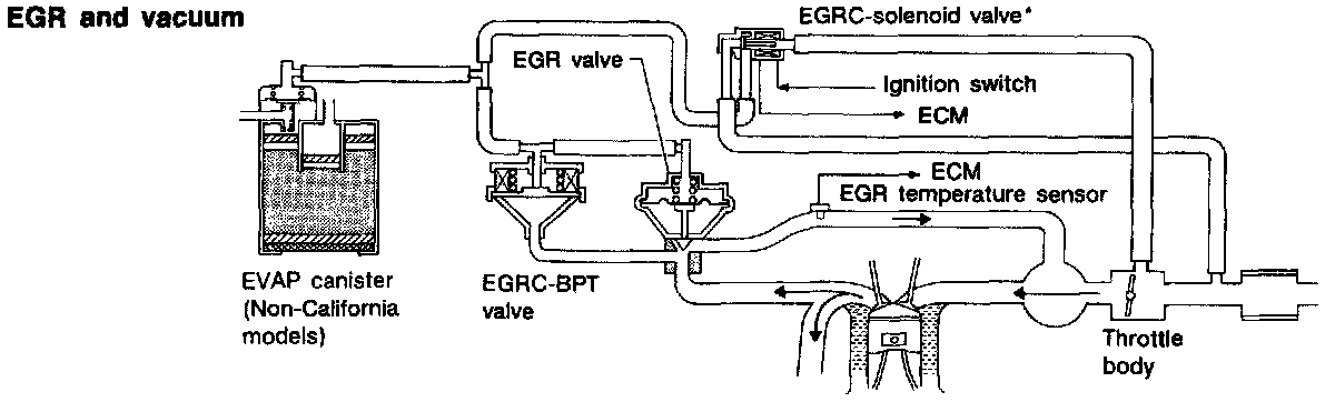 *: Only for California models. For non-California models, this means EGR valve & canister control solenoid valve.