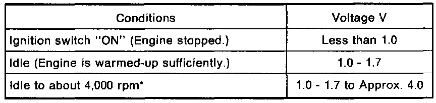 *: Check for linear voltage rise in response to increase to about 4,000 rpm in engine speed.