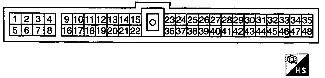 - Measure voltage between each terminal and terminal (35) or (48) by following "A/T CONTROL UNIT INSPECTION TABLE".