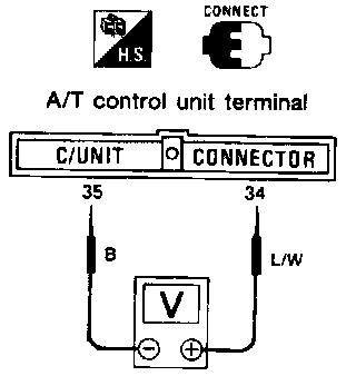 Throttle position can be checked by voltage across terminals (34) and (35) of A/T control unit.