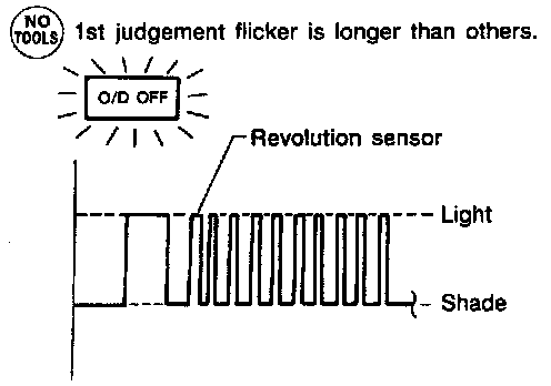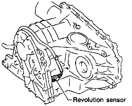 The revolution sensor detects the revolution of the idler gear parking pawl lock gear and emits a pulse signal. The pulse signal is sent to the A/T control unit which converts it into vehicle speed.