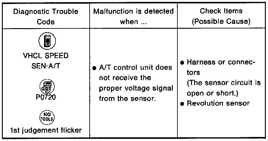 VEHICLE SPEED SENSOR-A/T (REVOLUTION SENSOR) CIRCUIT CHECKDIAGNOSTIC CHART