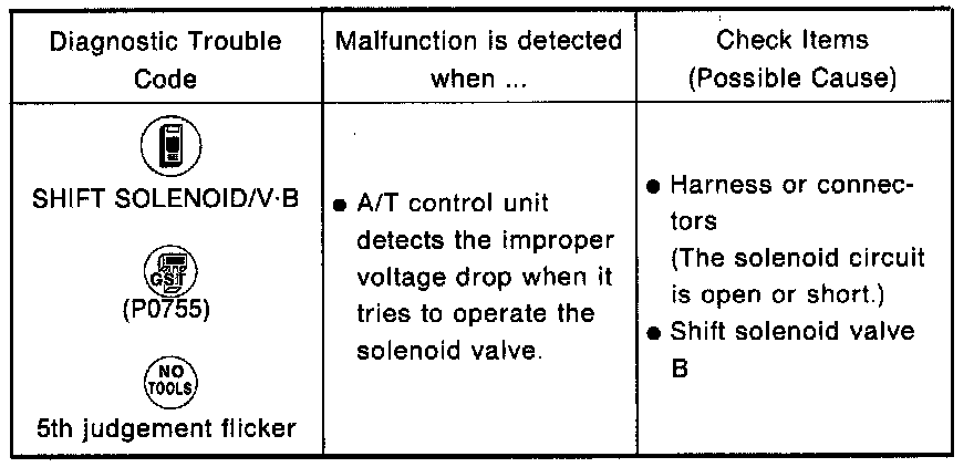 SHIFT SOLENOID VALVE B CIRCUIT CHECKDIAGNOSTIC CHART